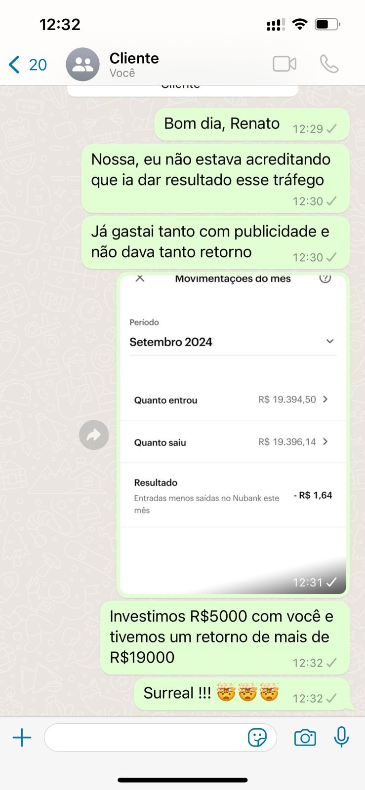 Não arrisque seu faturamento com tentativas e erros. Contrate um gestor de tráfego e comece a ver o crescimento ainda neste mês. Nossa estratégia já entregou resultados comprovados para negócios como o seu.